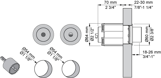 Vola A83-20 trykknapper til cisterne med pneumatisk skyl. Diameter: 60 mm, farve: krom.