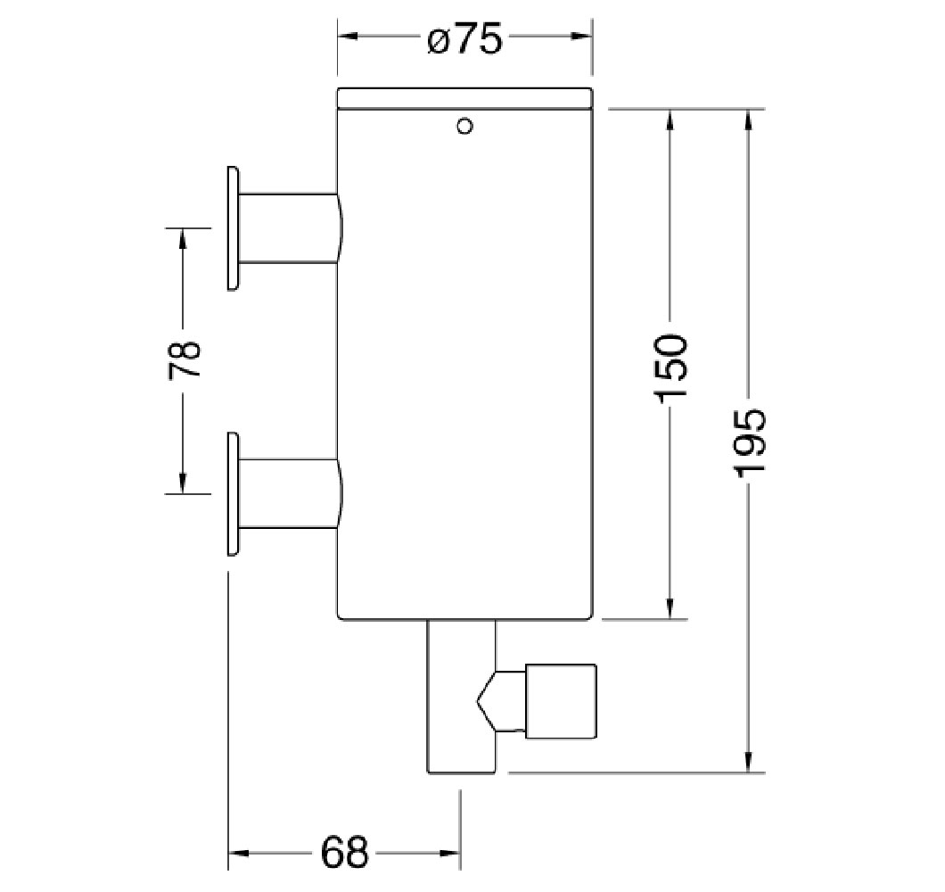 Elegant Vola T10-20 sæbedispenser i børstet krom. Kapacitet: 0,5 liter. Velegnet til milde, pH-neutrale flydende sæber og cremesæber. Viskositet: 1500cP - 2000cP ved 20°C.