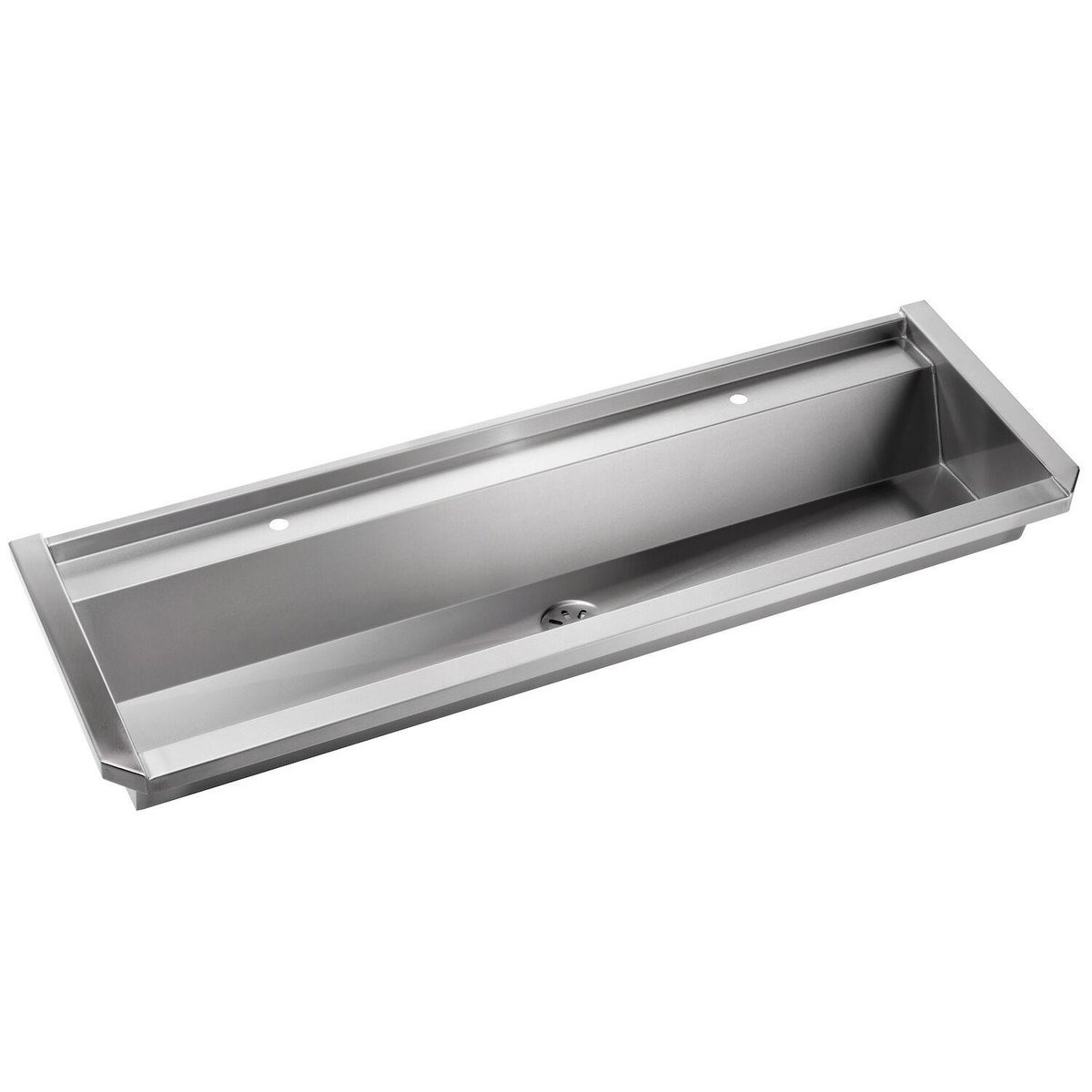 Vaskerende Intra uden bagplade, 1800 x 395 x 126/163 mm, udført i rustfrit stål. Inkluderer integrerede vægbæringer og ventil. Designet med 90 graders vinkel i de indvendige hjørner og fald mod afløb i midten.