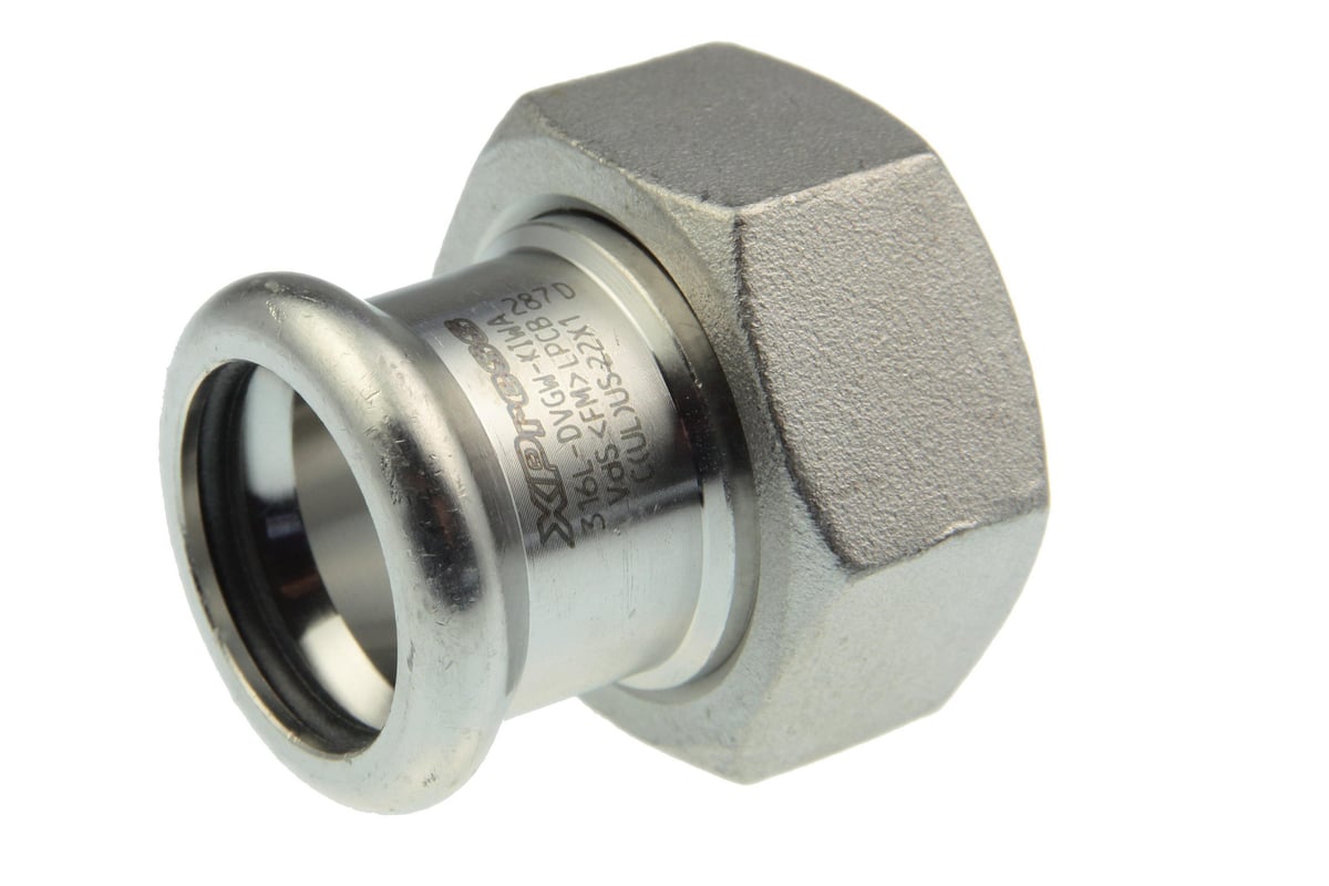VSH XPress rustfri press overgang med omløber. Komplet system med fittings og rør fra 15 mm - 108 mm til forskellige installationer.