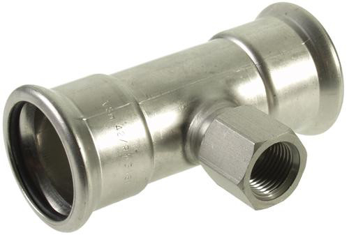 VSH XPress rustfri press t-stykke. Komplet system med fittings og rør fra 15 mm - 108 mm. Til brugsvand, regnvand, varmeanlæg og køleanlæg.