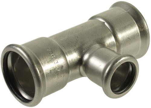 VSH XPress rustfri press t-stykke. Komplet system med fittings og rør fra 15 mm - 108 mm. Til brugsvand, regnvand, varmeanlæg og køleanlæg.