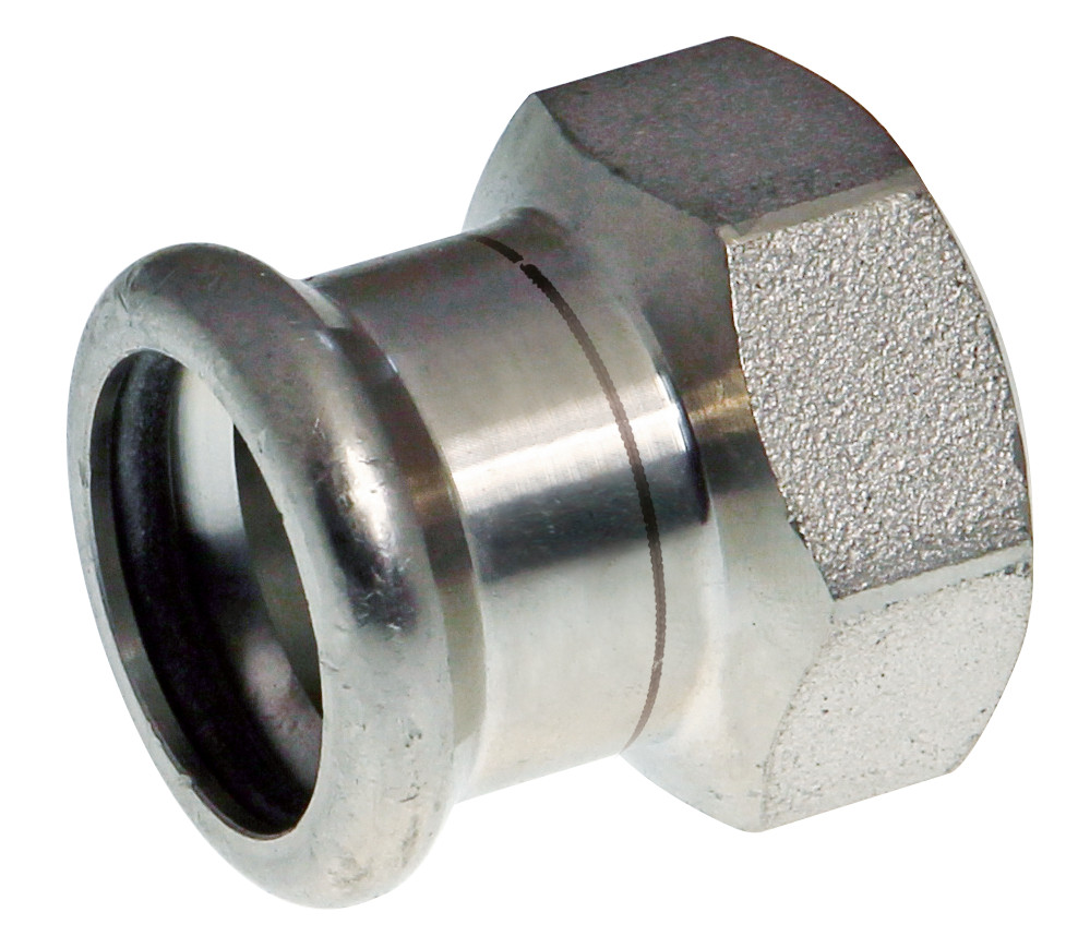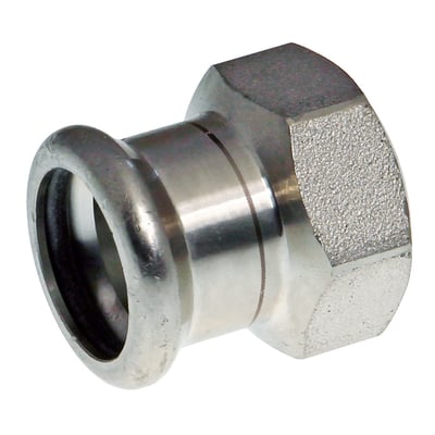 VSH XPress RF 304 R2402 er en lige overgang i rustfrit stål med press og gevindmuffe, der muliggør hurtig og nem installation i din rørinstallation.