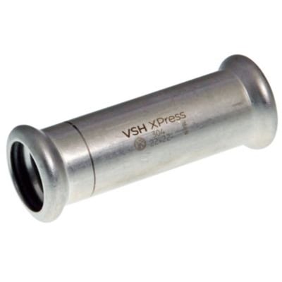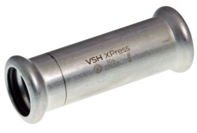 VSH XPress RF 304 skydemuffen er en lige muffe i rustfrit stål med 2 pressender. Designet for hurtig, nem og ren installation i rørinstallationer.
