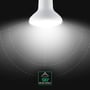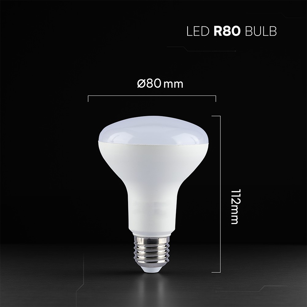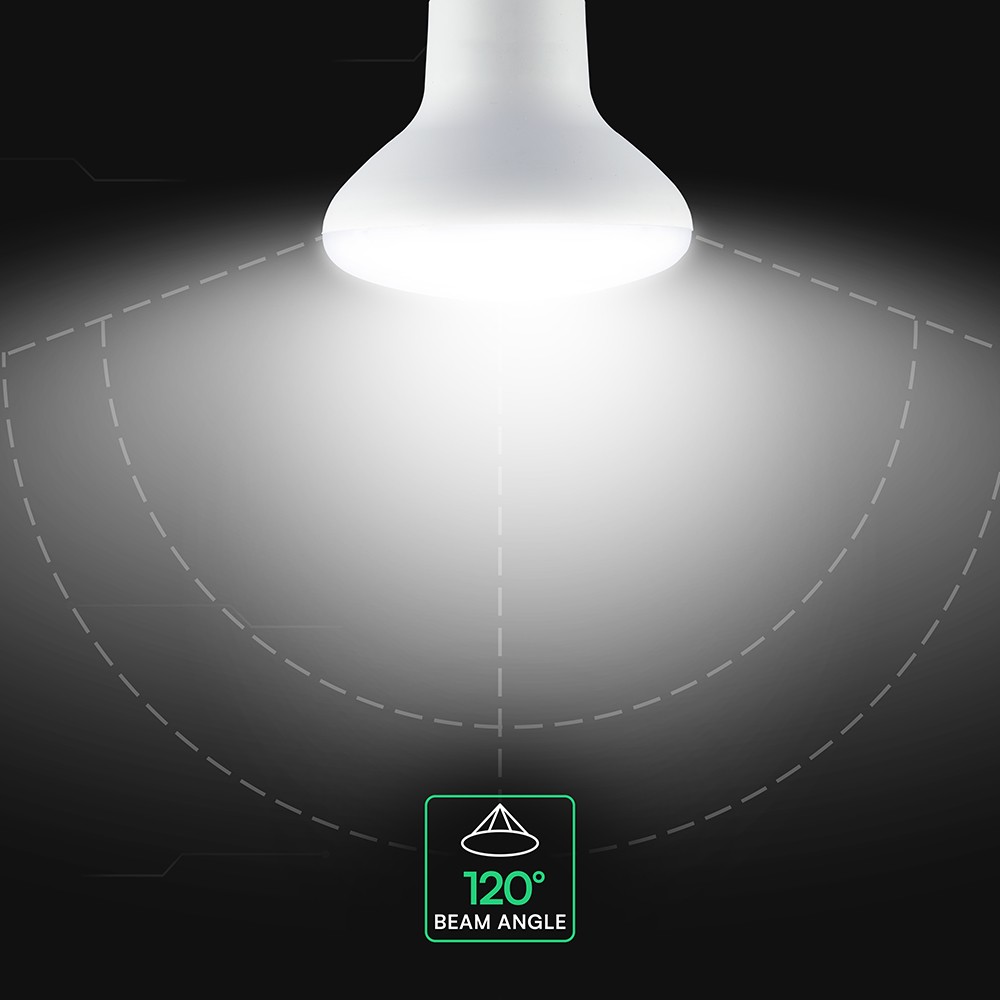 Denne E27 LED pære med 10W forbrug og 1055lm lysstyrke giver et koldt hvidt lys (6500K) med en bred spredning på 120 grader. Den har en forventet levetid på 25.000 timer.