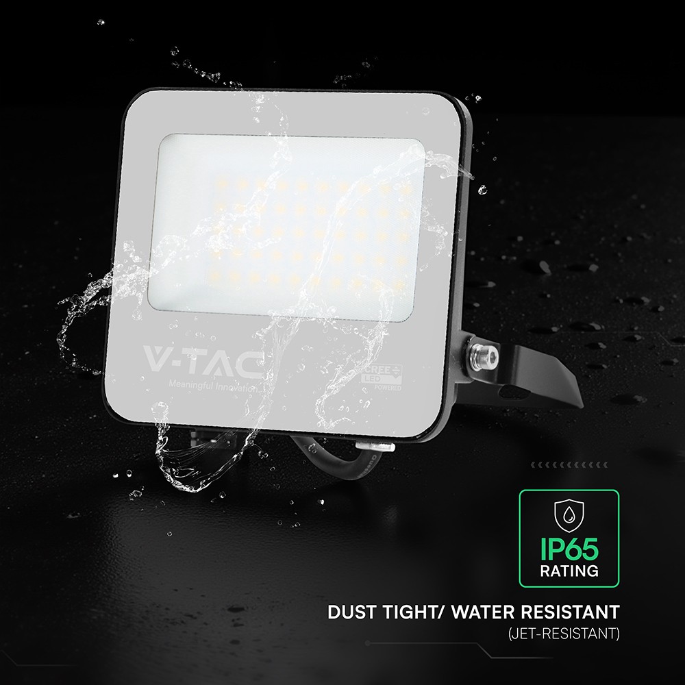 Kraftig 30W LED projektør med 4050 lumen og IP65-klassificering. Ideel til udendørs brug med en lysspredning på 115°.