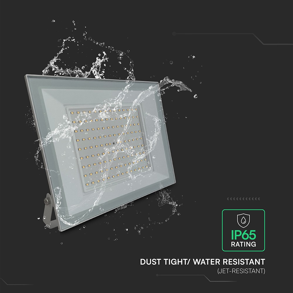 Kraftig 100W LED projektør med 9500 lumen og 4000K neutral hvid. IP65 klassificeret og fremstillet i aluminium. Ideel til udendørs brug.