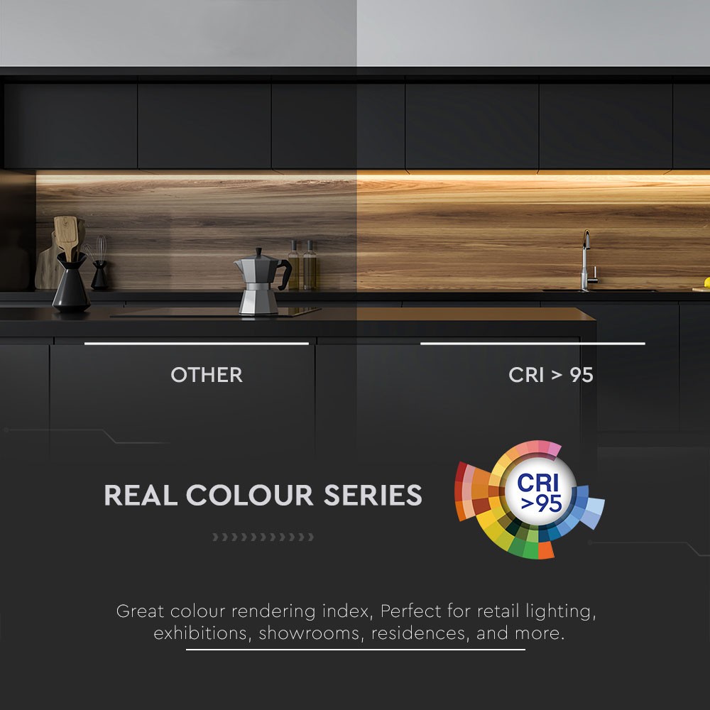Med en IP65-klassifikation er strippen beskyttet mod indtrængen af støv og vandstråler. Den høje RA-værdi på 90 sikrer desuden en fremragende farvegengivelse.