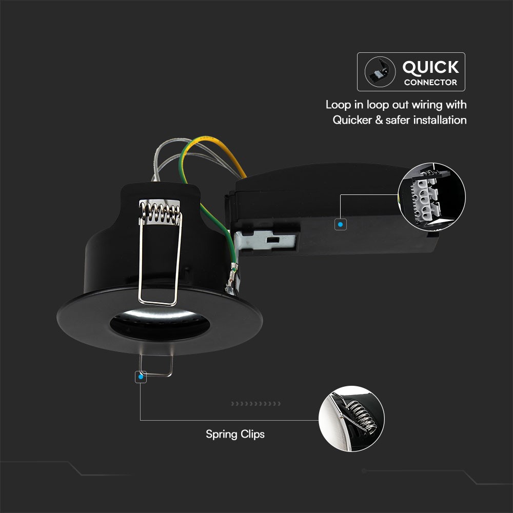 Dette GU10 indbygningsspot i elegant sort finish er fremstillet af holdbart presset stål. Med en IP20 klassifikation er det ideelt til brug i tørre indendørs miljøer.