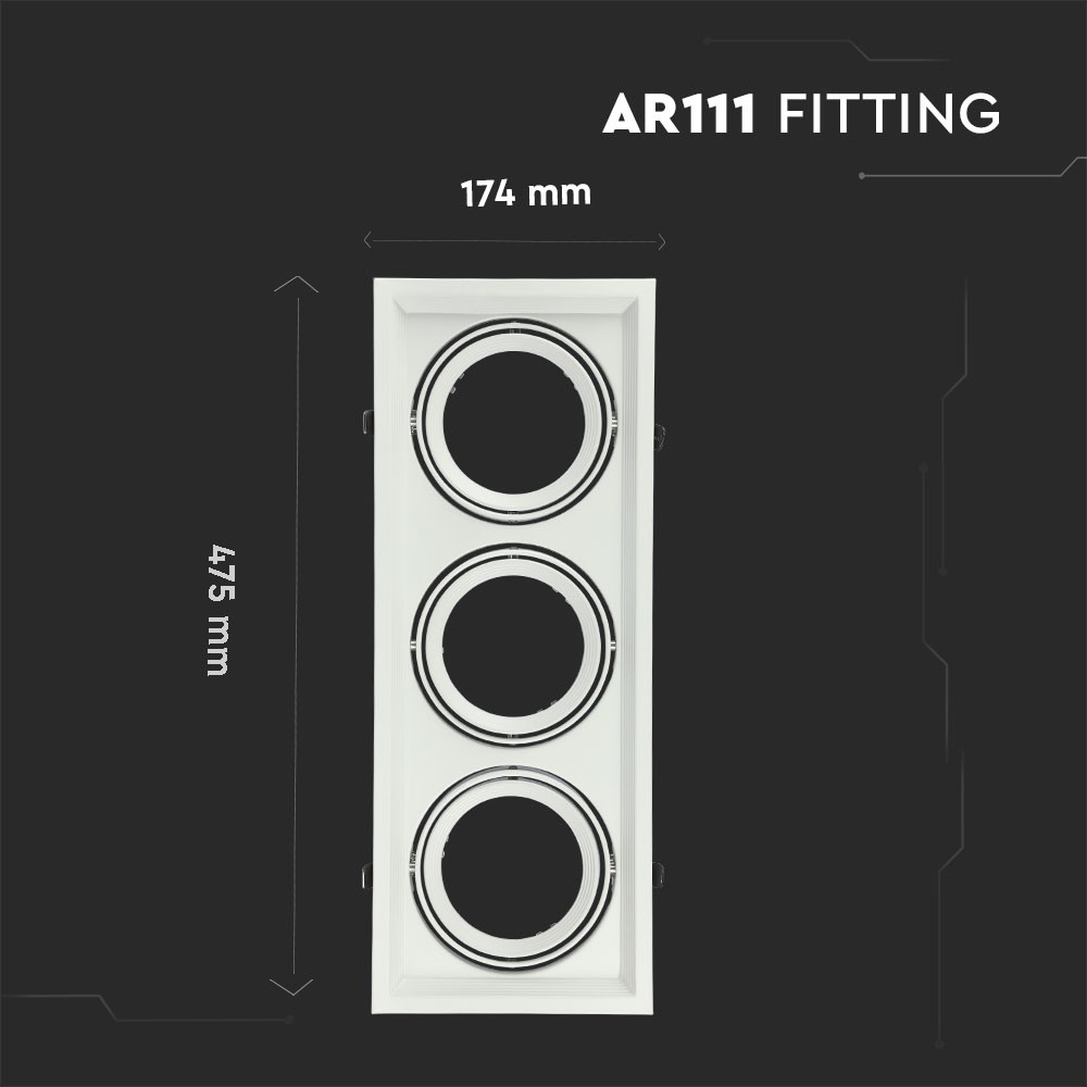 Denne multi-funktions fatning er designet til at rumme 3xAR111 spotlys. Fremstillet i slidstærkt aluminium, tilbyder den en robust løsning til din belysning.