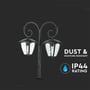 Stilfuld havelampe i sort aluminium med IP44-klassificering. Har 2 E27 fatninger til dine egne lyskilder.