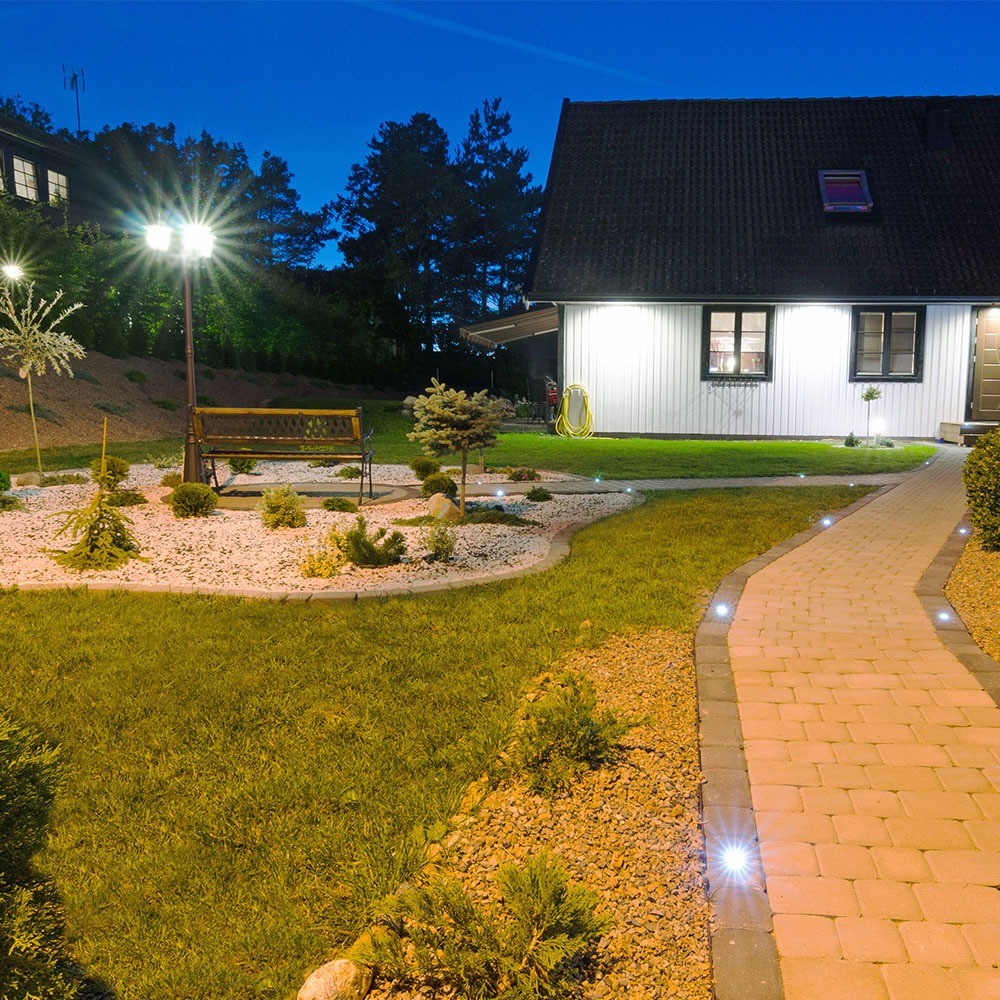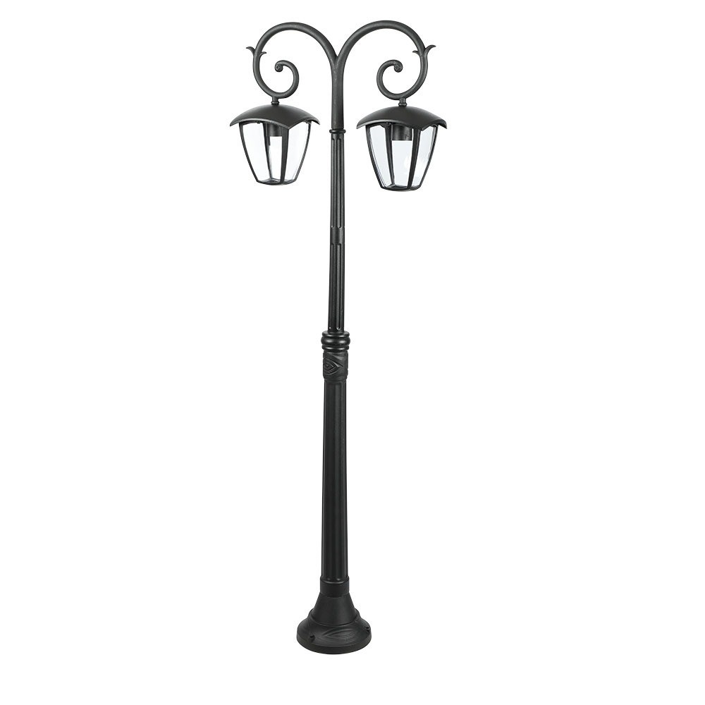 Denne elegante havelampe er designet til at tilføje både funktionalitet og stil til dit udendørsområde. Med en højde på 141 cm og to hoveder, fordeler den lyset effektivt.