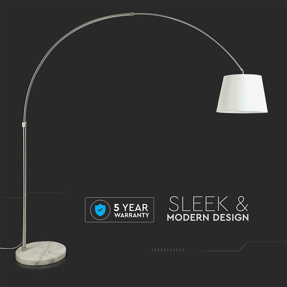 Denne stilfulde gulvlampe, model VT-7451, kombinerer moderne design med funktionalitet. Lampen er udført i en elegant elfenbensfarve og prydes af en solid marmorfod, der sikrer stabilitet og et luksuriøst udtryk.