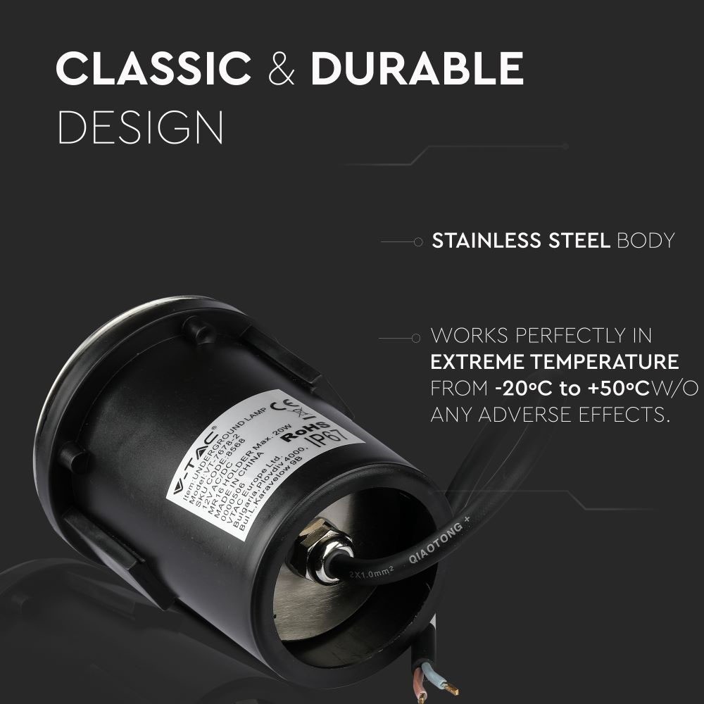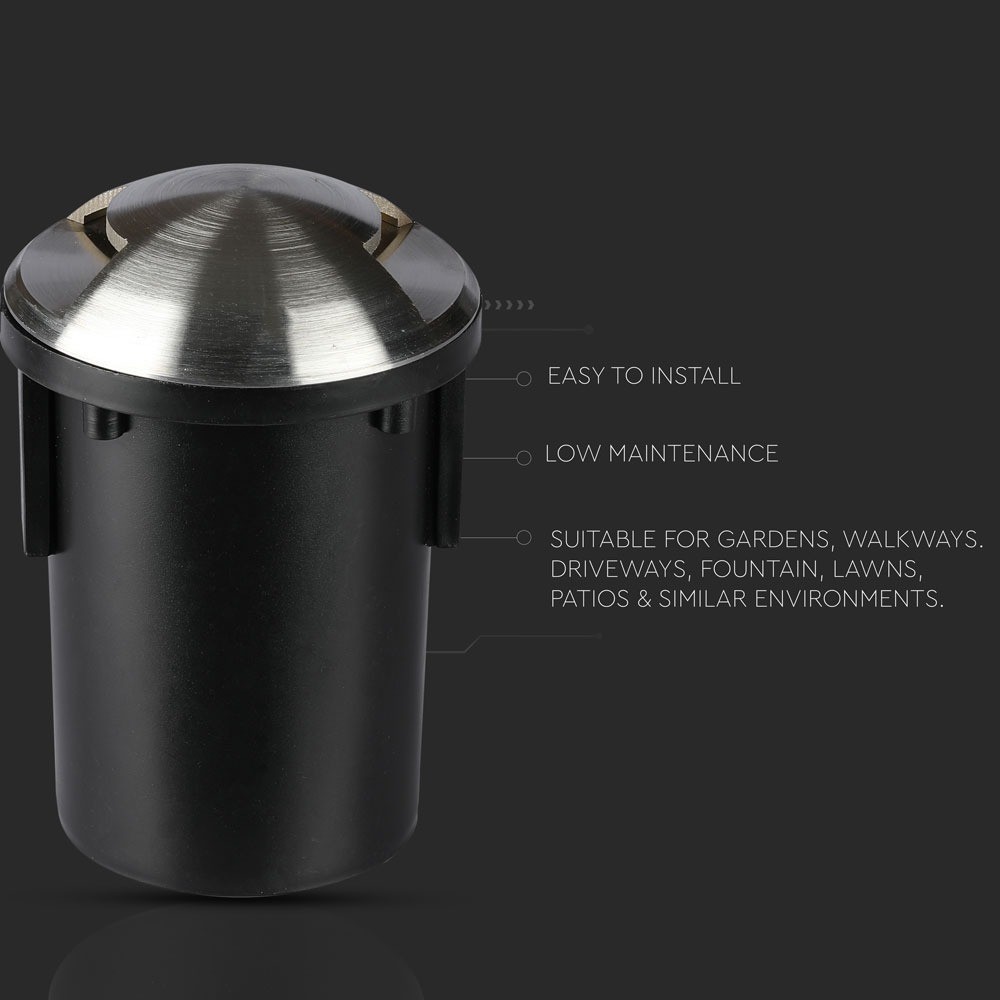 Dette MR16 nedgravningsspot er designet til at modstå elementerne og er fremstillet i holdbart rustfrit stål. Med en IP67 klassifikation er spotten beskyttet mod støv og vandindtrængning, hvilket gør den ideel til brug i haver, indkørsler eller andre udendørs områder.