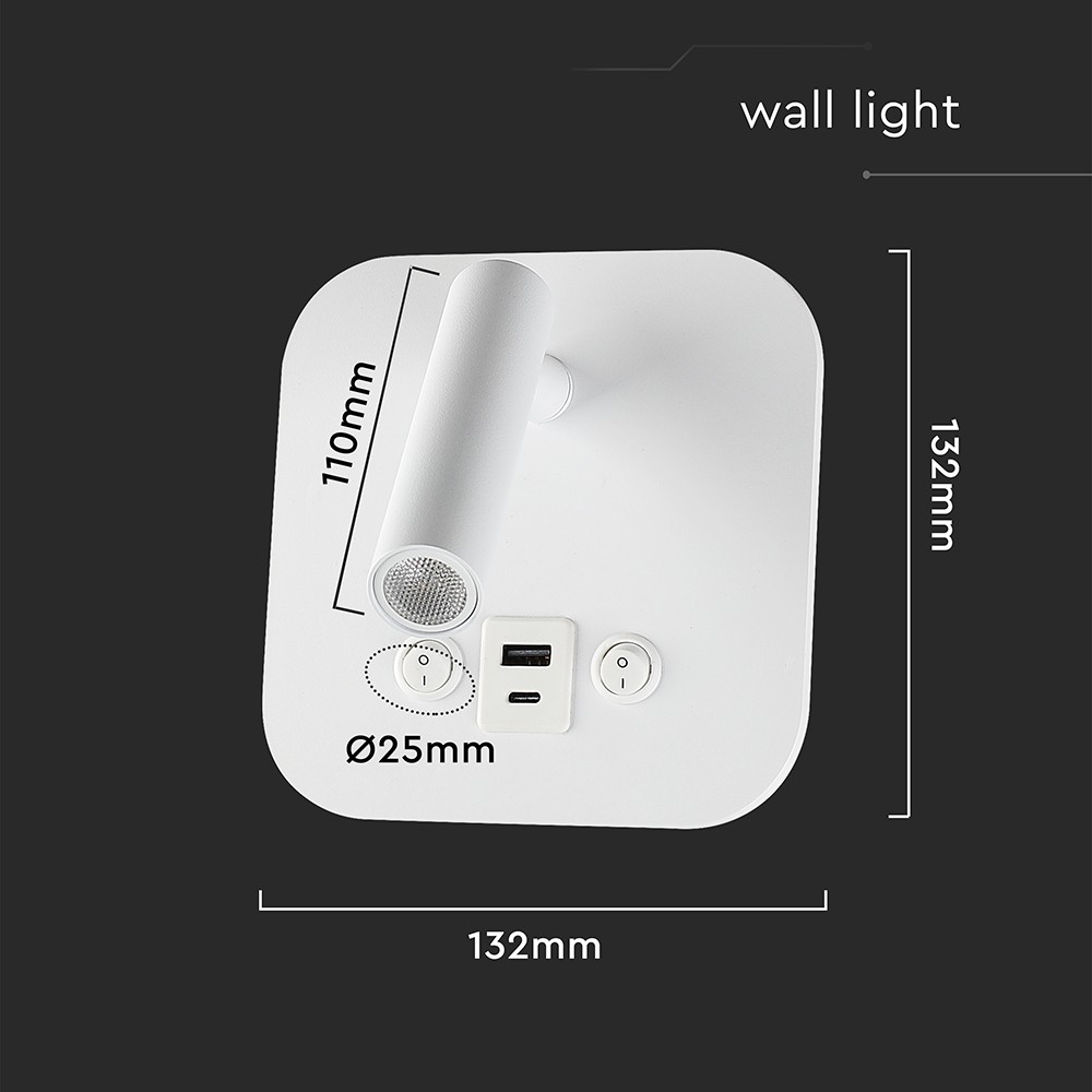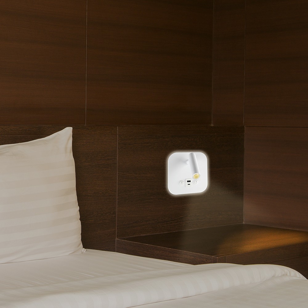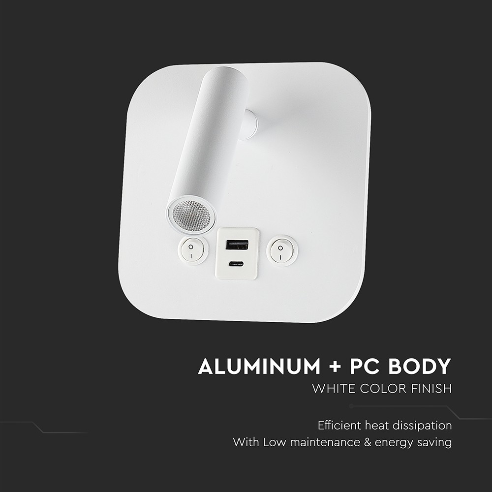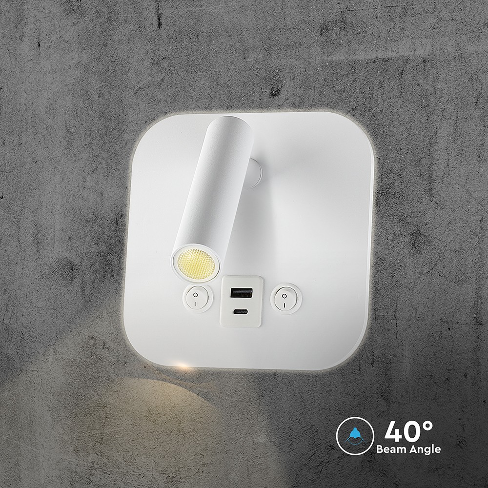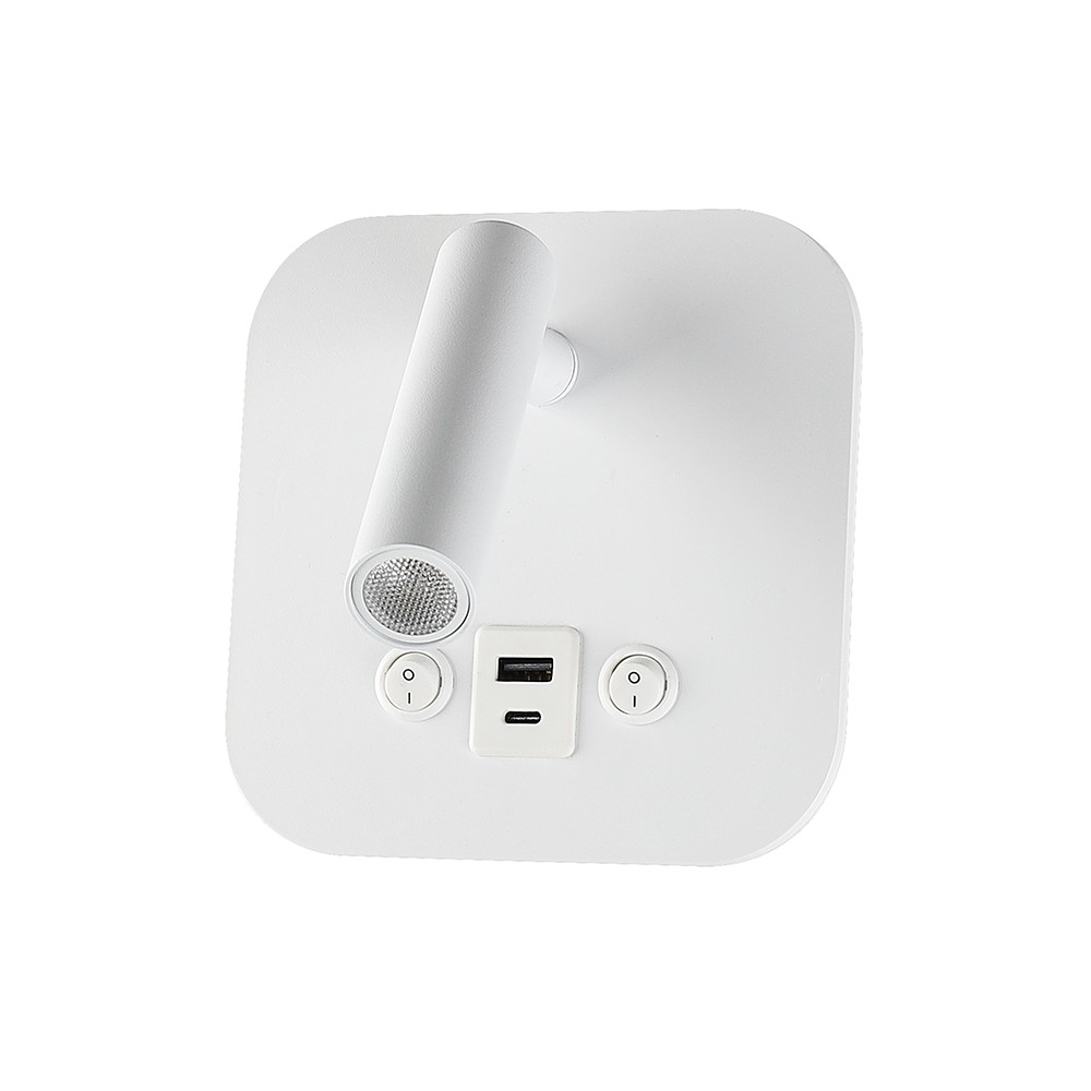 Moderne LED sengelampe med integreret USB/PD opladning. 8W, 830 lumen, 3000K. Fremstillet i aluminium og PC.