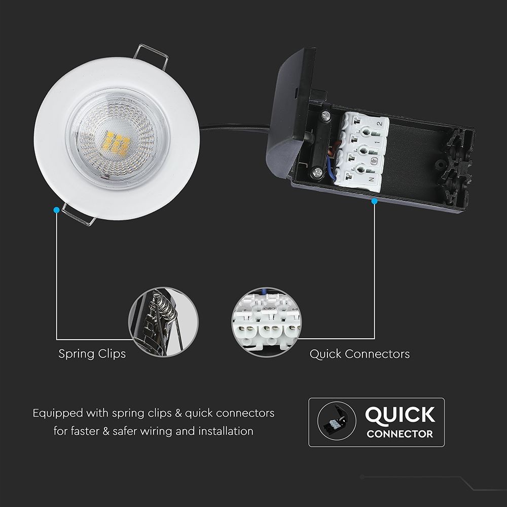 Effektiv 5W Samsung LED indbygningsspot med IP65-klassificering. Giver 500 lumen ved 4000K og er dæmpbar. Ideel til mange formål.