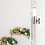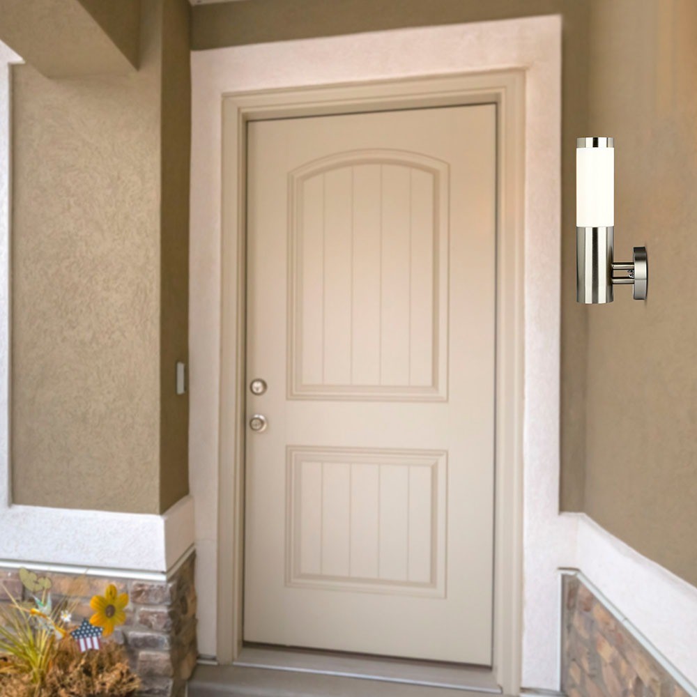 Denne E27 væglampe kombinerer funktionalitet med et stilrent design i rustfrit stål. Lampen er ideel til udendørs brug takket være dens IP44 klassifikation, der beskytter mod støv og vandsprøjt. Den leveres uden lyskilde, hvilket giver dig frihed til at vælge den E27 pære, der passer bedst til dine behov og den ønskede atmosfære.