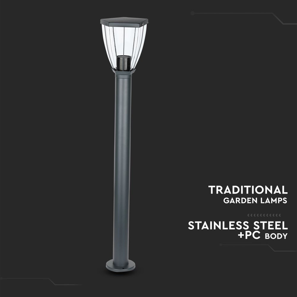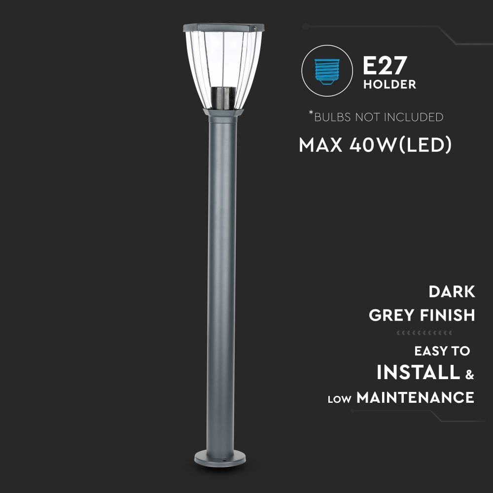 Elegant E27 havelampe i rustfrit stål, 80 cm høj. IP44-klassificeret for udendørs brug. Sort/grå finish. Lyskilde medfølger ikke.