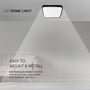 Kvadratisk 24W LED loftslampe med 2500lm og IP44-klassificering. Leverer koldt hvidt lys (6500K) med en bred spredning på 120°.