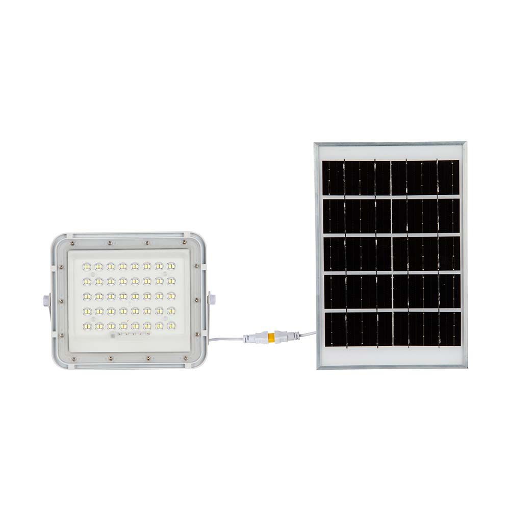 Denne VT solar projektør på 80W tilbyder en robust og energieffektiv belysningsløsning til udendørs områder. Med en lysfarve på 4000K leverer den et neutralt hvidt lys, der er ideelt til en bred vifte af anvendelser, hvor god synlighed er essentiel.