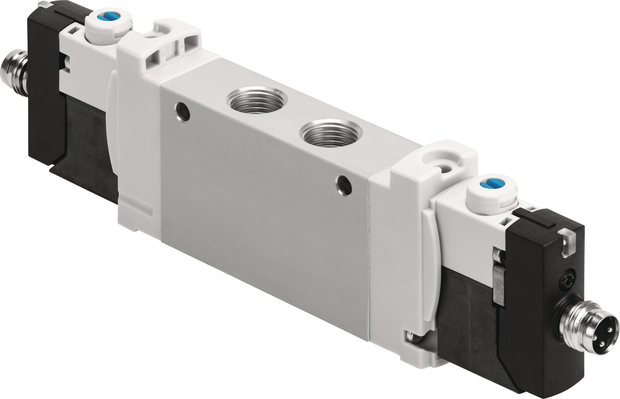 Kompakt enkelventil til installation. 2 * 3/2 NC Monostabil, M7 gevindtilslutning, trykområde 1,5 - 7 bar, flow op til 280 l/min, spolespænding 24 V DC, M8 3 polet.