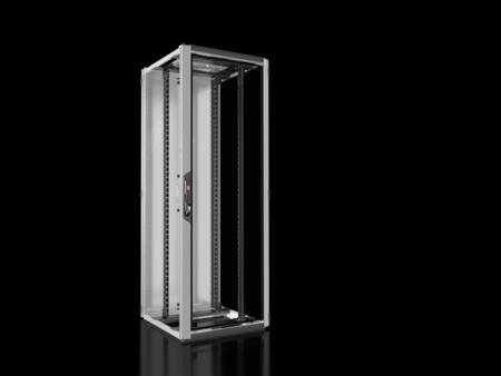 VX IT netværks-/serverskab standard med dimensionerne bredde 800 mm, højde 2200 mm og dybde 800 mm. Skabet har 47 U og er udstyret med en lukket glasdør i aluminium foran og en lukket pladedør i stål bagpå. Skabet er lodret opdelt og har 180 ° hængsler for og bag.