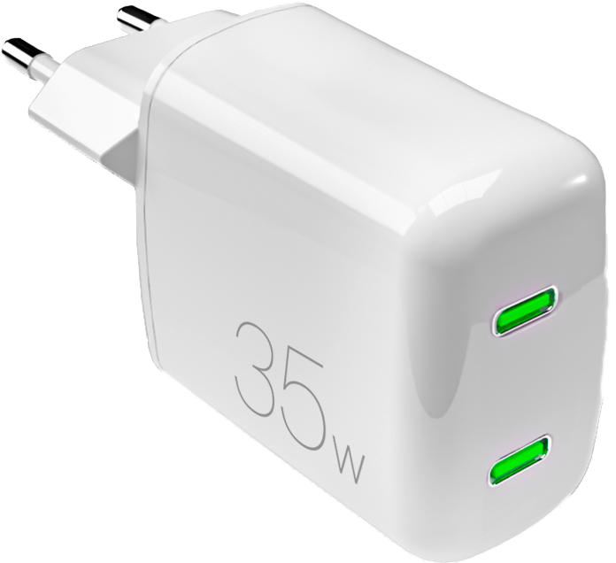 Denne GaN vægoplader er designet til at levere hurtig og effektiv opladning til dine enheder. Med en opladningshastighed på 35W og to USB-C udgangsporte kan du oplade flere enheder samtidigt. GaN-teknologien (Galliumnitrid) muliggør en mere kompakt og lettere oplader end traditionelle siliciumbaserede opladere, uden at gå på kompromis med ydeevnen.