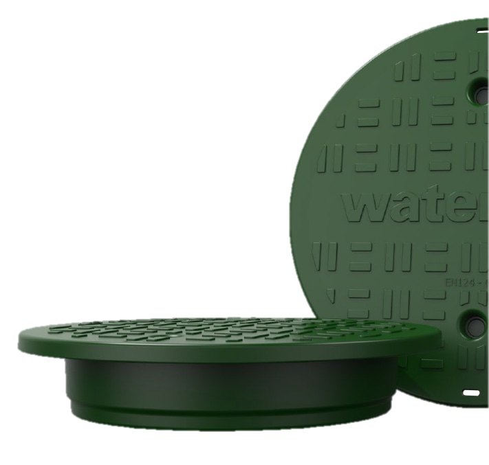 Uisoleret og låsbart dæksel fra WaterCare med en diameter på 400 mm, fremstillet i PE.
