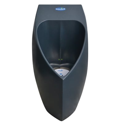Waterless ECO urinal med 50mm lodret afgang. Produceret i Danmark i 100 % genbrugsplast med anti splash design. Kan genbruges op til 7 gange.