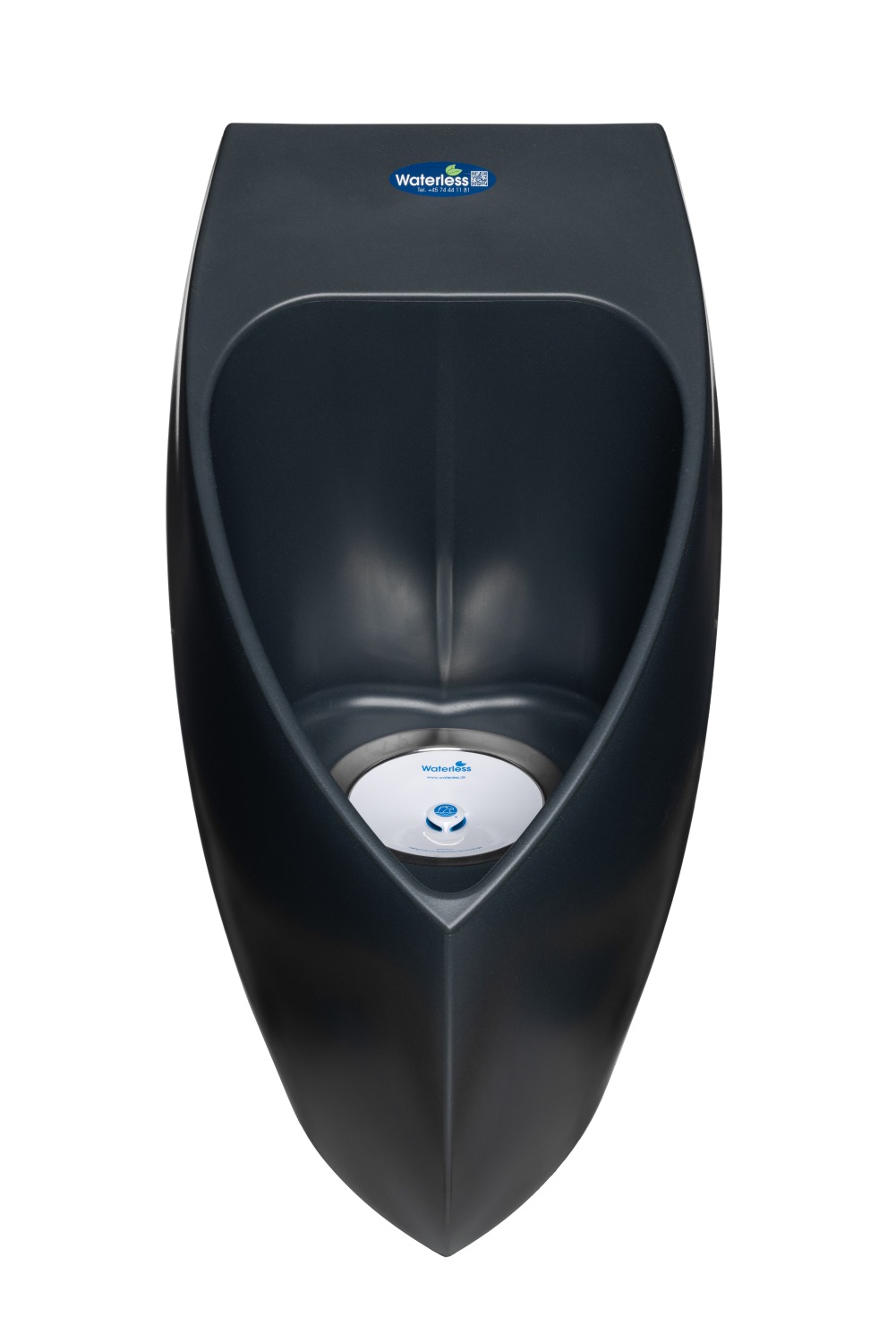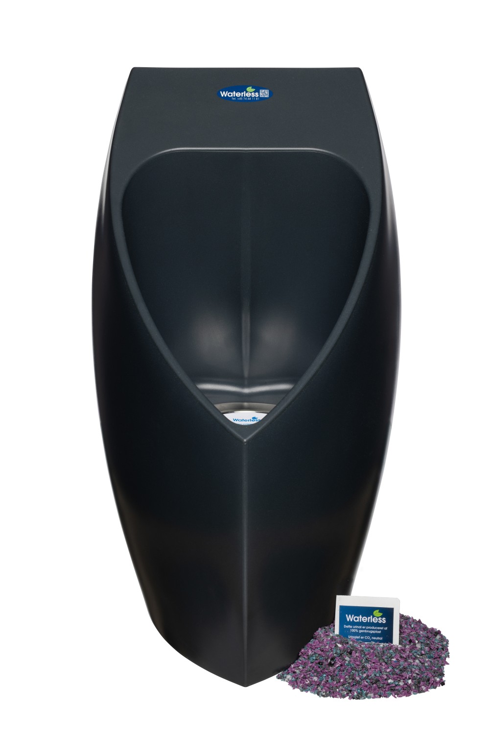 Waterless ECO urinal med 32mm vandret afgang. Produceret i Danmark i 100 % genbrugsplast. Det er designet med anti splash design, af en dansk designer. Urinalet kan genbruges op til 7 gange.