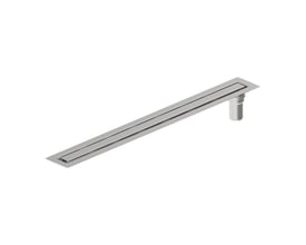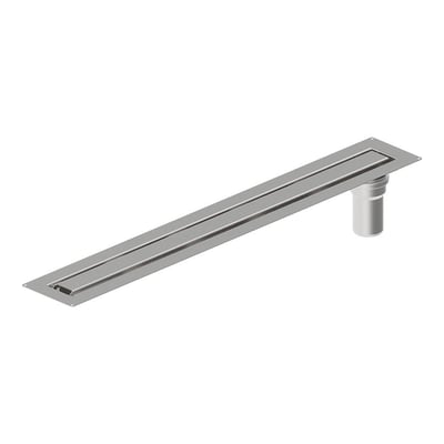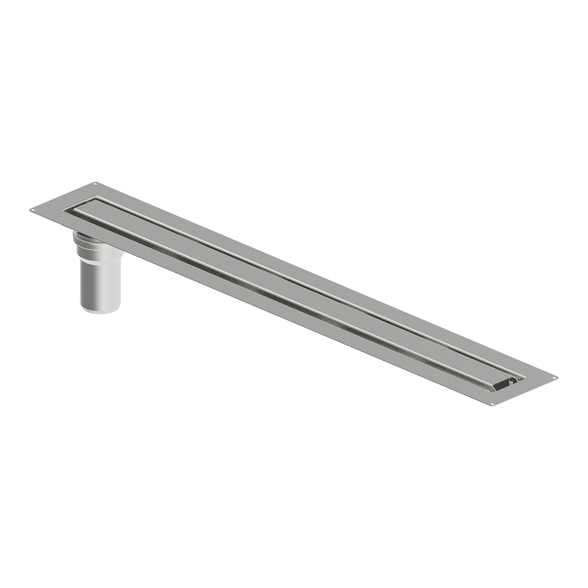 BLUCHER Waterline Atlantis afløbsrende på 800 mm til beton- og flisegulve. Fremstillet i rustfrit stål (AISI304/EN1.4301) med et lodret Ø50 mm udløb. Renden er rektangulær og designet til smøremembran.