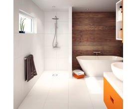 Waterline baderumsrende på 300 mm er ideel til badeværelser med beton- og flisegulve. Denne model er designet med en rektangulær ramme og et lodret udløb på Ø50mm, hvilket sikrer effektiv vandafledning.
