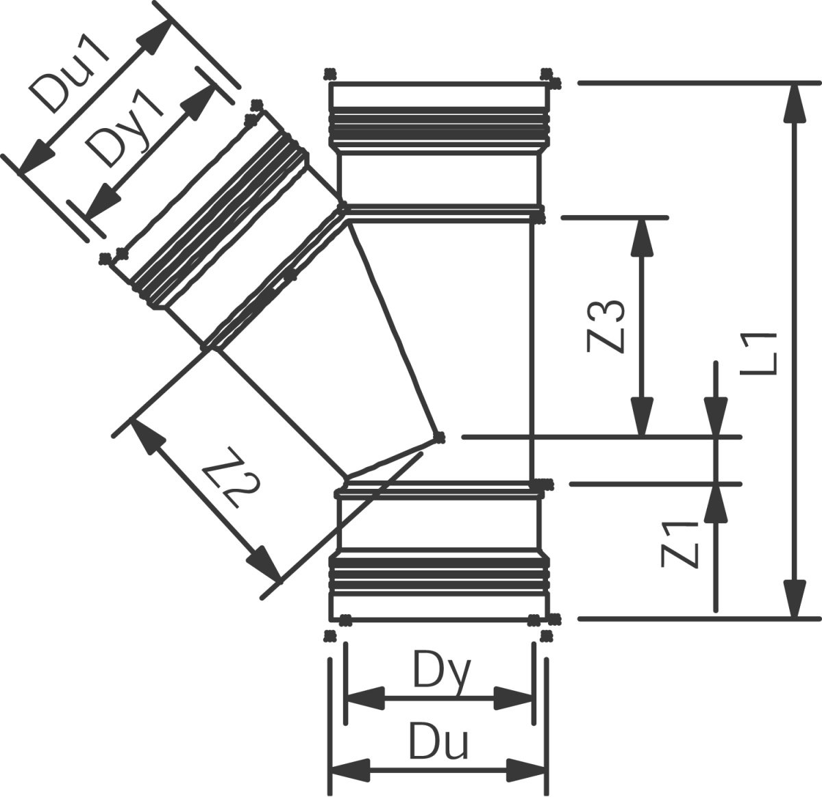 Wavin kloakgrenrør, 110 x 110 mm, 45°, PP, 3 muffer
