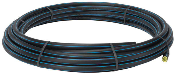 Uponor PE-rør er et universalt system med en bred vifte af dimensioner. Det er et fleksibelt rør, som har været anvendt til mange forskellige opgaver siden 1950'erne. Røret er fremstillet i PE100RC materiale, sort med blå stribe, iht. EN12201 og mærket med W (Water). Leveres i ruller og længder.