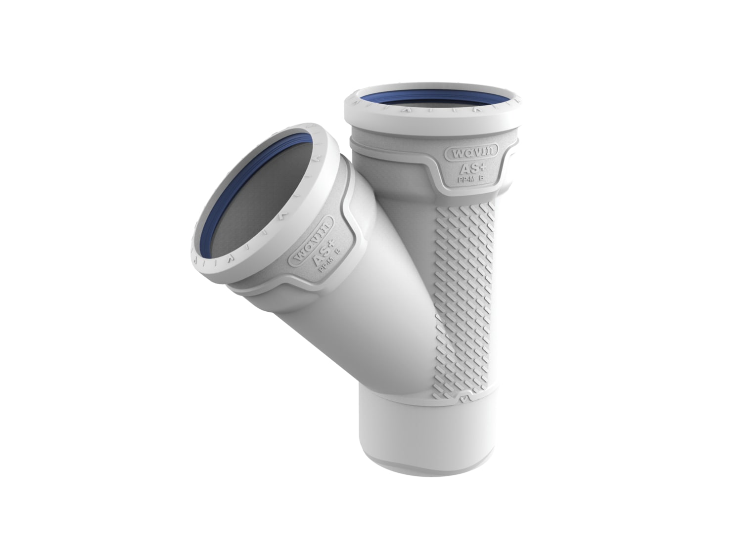 Wavin AS+ grenrør til etagebyggeri. Støjdæmpende afløbssystem i lysegrå PP-M. Dimensioner fra Ø50 - Ø200. Opfylder kravene til lyddæmpning efter DS432.