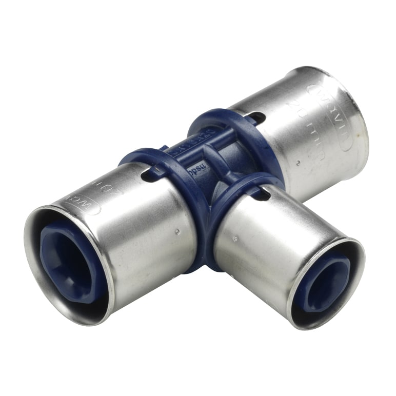 Presfitting som anvendes til Tigris Alupex-rør fra Wavin. T-stykke med preskoblinger i begge ender samt afgreningen. Findes i flere udgaver hvor enten afgrening, hovedrøret eller alle enderne er reduceret i forhold til hinanden.