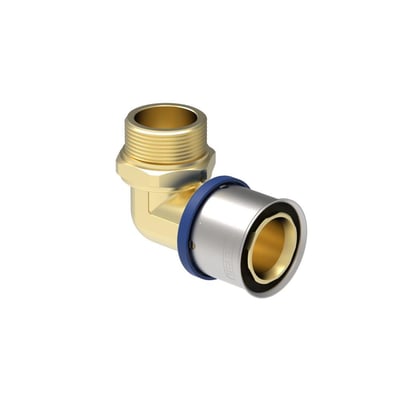 TIGRIS M1 alupex-system i blyfri messing. Presfittings med trykkappe af rustfrit stål til samling af alupex-rør.