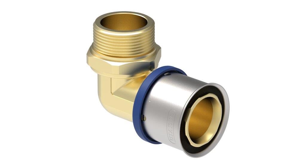 TIGRIS M1 Alupex-system i blyfri messing. Presfittings med trykkappe af rustfrit stål, til samling af ALUPEX-rør.