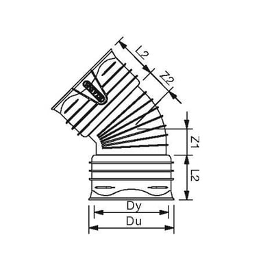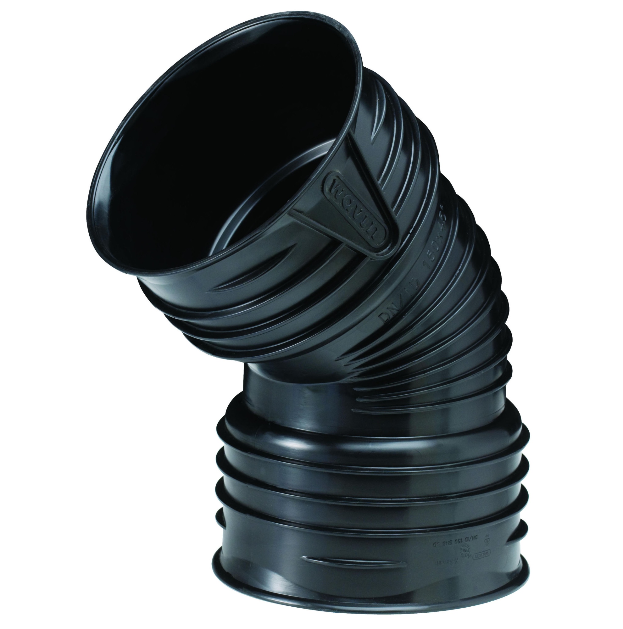 X-Stream DN100 45° PP-bøjning uden gummiringe. DN100, SN8 stivhedsklasse. Ideel til afløbssystemer.
