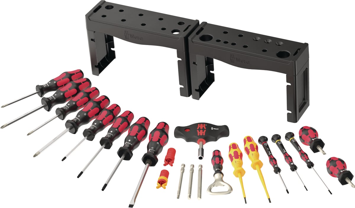 - VDE-skruetrækkere: To isolerede skruetrækkere (1060) til arbejde under spænding.