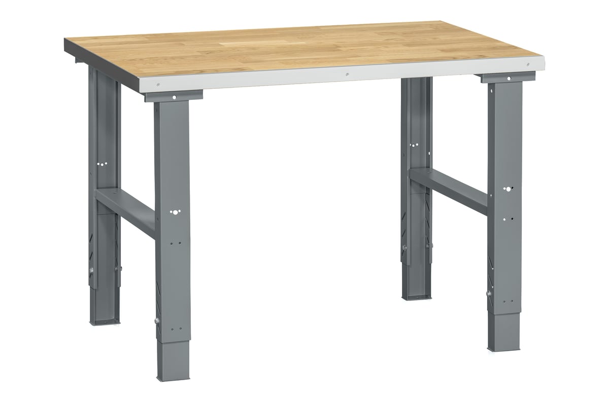 Komplet filebænk med justerbare stålbukke og en slidstærk egeparketbordplade (1200x800x40 mm). Maksimal belastning: 500 kg.