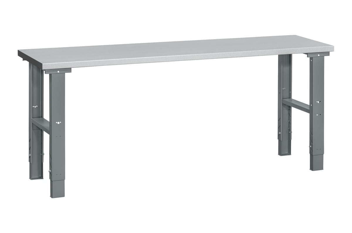 Komplet filebænk med to manuelt justerbare, stabile og tunge stålbukke og en allround plade i stål (2000x600x40 mm). Maksimal belastning er 500 kg fordelt vægt. Laveste højde 745 mm. Højeste højde 1015 mm.