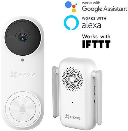 Dette batteridrevne video dørklokkesæt fra Ezviz indeholder en trådløs dørklokke og en tilhørende klokke, der sikrer pålidelig overvågning af din hoveddør. Med DB2 Pro kan du nemt videochatte med besøgende i høj kvalitet og holde øje med, hvad der sker udenfor via Ezviz-appen på din telefon. Den medfølgende klokke sikrer, at du aldrig går glip af en advarsel, selv når du er hjemme.