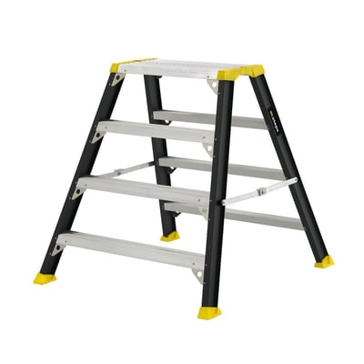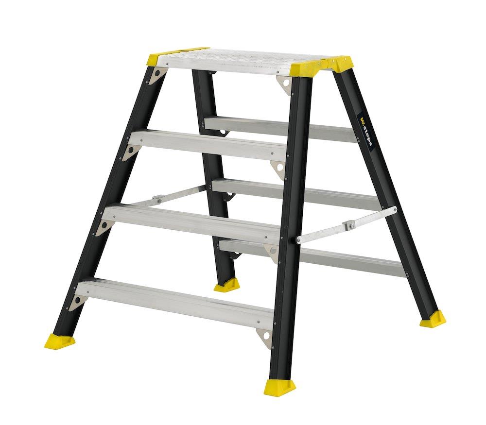 Denne arbejdsbuk er konstrueret til at modstå høje belastninger og intensivt dagligt brug. Den er udstyret med vinklede ben og en rummelig platform, hvilket sikrer et yderst stabilt og sikkert arbejdsredskab.