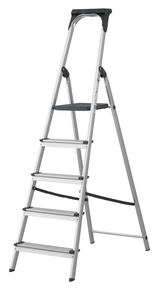 Platformen giver en stor og stabil ståflade, og i udfoldet tilstand fungerer den som en lås, der øger stabiliteten. De riflede trin sikrer sikker op- og nedstigning.