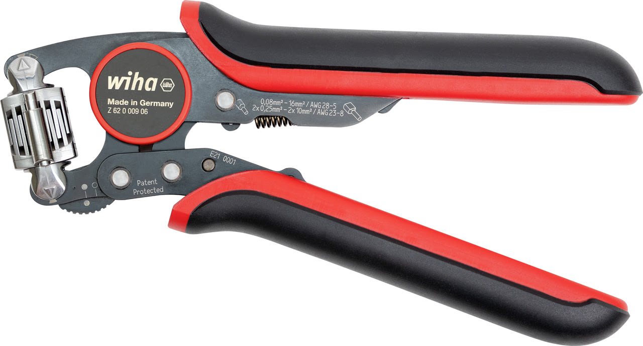 Krympeåbningen er tilgængelig fra begge sider, og terminalrør op til en længde på 18 mm kan bearbejdes i én krympeproces. Med et krympeområde fra 0,08 til 16 mm² dækker krympeværktøjet fra Wiha et bredt anvendelsesområde og er også egnet til krympning af twin-rør op til 2x10 mm².