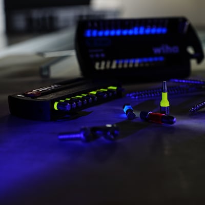 - Let at finde: Den markante røde farve gør, at du nemt kan finde dine bits, selv i mørke omgivelser ved hjælp af UV-lys.