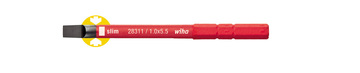 Wiha SlimBit 1000 V bits til brug med speedE®, SlimVario og TorqueVario systemer. Skaftet er 33 % smallere end standard isolerede skrueværktøjer, hvilket giver nem adgang.