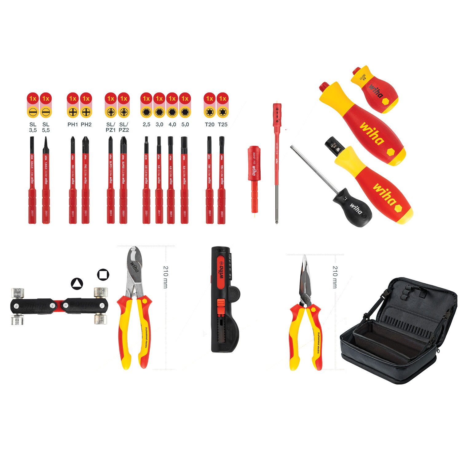 Wiha montagesæt til ladebokse. Kompakt taske med alt det nødvendige udstyr til montageopgaven.