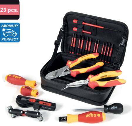 Værktøjssættet er pladsbesparende takket være et omfattende skiftebitsystem. Wiha slimTechnology sikrer op til 33% slankere bits, hvilket gør det nemt at tilgå dybtliggende skruer og fjederelementer. Sortimentet er sammensat i samarbejde med leverandører af ladebokse.